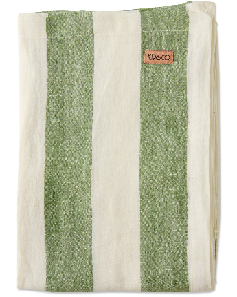 Bring slow summer afternoons to the table. Woven from lush French flax linen, the Moss Stripe Tablecloth pairs creamy white and moss green stripes for an effortlessly chic, textural look. Perfect for alfresco lunches, golden hour dinners, or just elevating everyday meals, it’s the kind of table linen that makes every gathering feel like a little holiday at home.