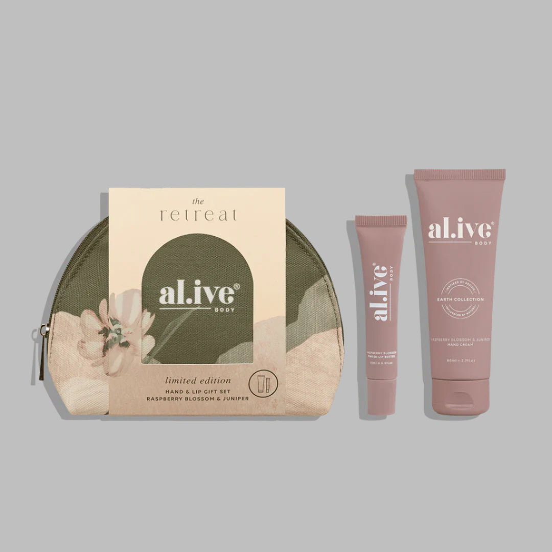 Gift Set includes 80ml hand cream, and 15ml lip balm encased in a pouch