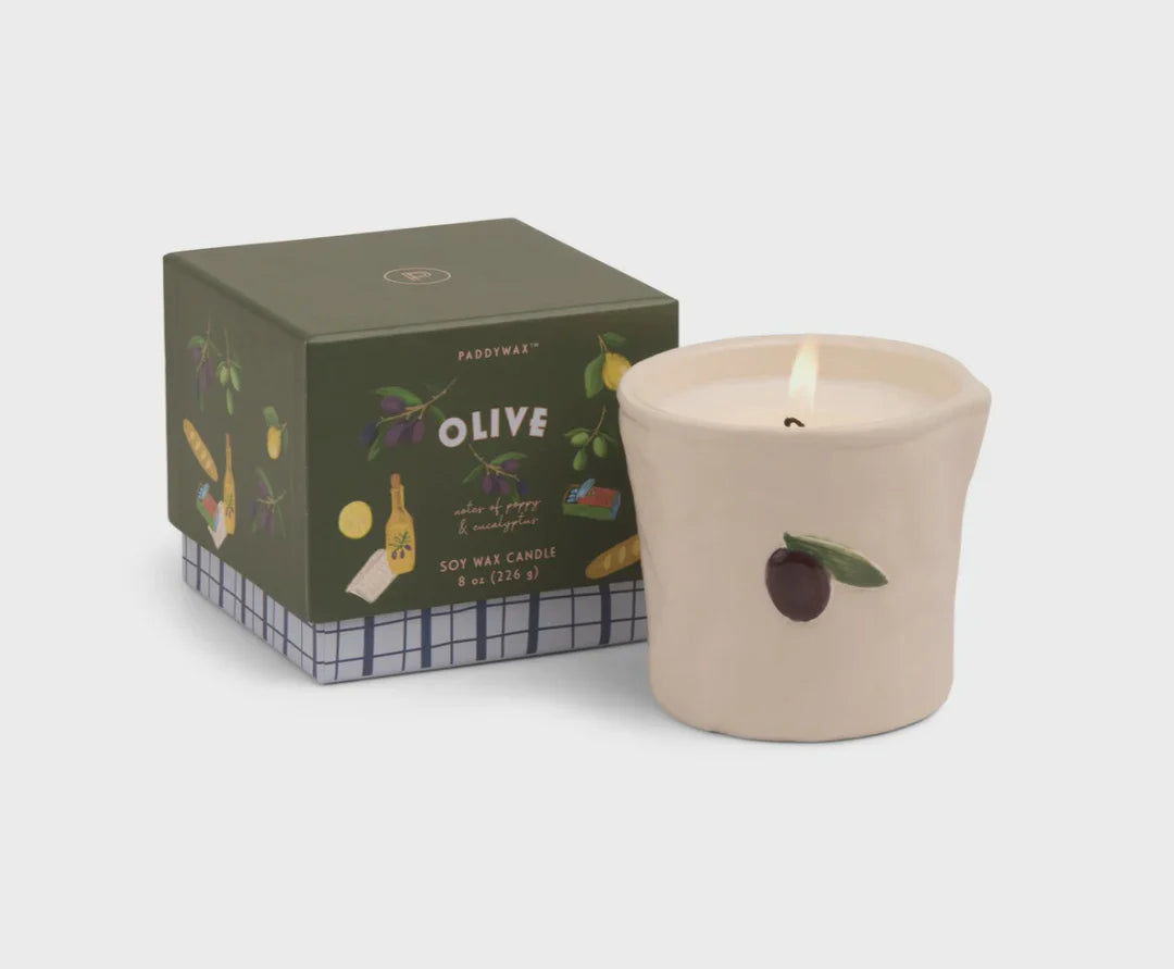Infuse your space with the sophisticated aroma of the Bistro Ceramic Candle. Featuring an embossed olive design, this 8oz candle brings the elegance of French bistros into your home.