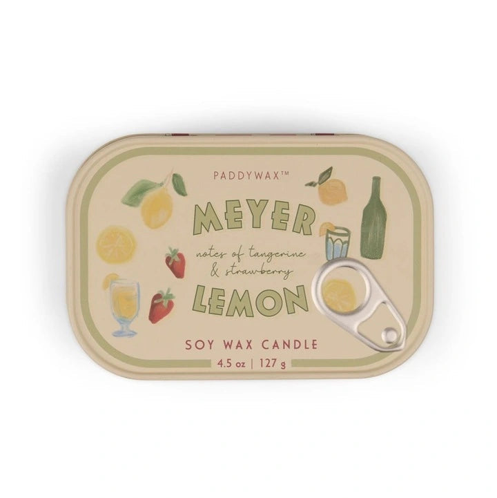 Step into our Paddywax Bistro. Each candle in this collection radiates a delicious aroma that perfectly complements its charming design, bringing a touch of culinary culture into your home. Two-Wick Tin Candles with a pull-tab for added character inspired by sardine tins, these tin candles with hand illustrated artwork offer a cozy glow with its two wicks, and a comforting scent.