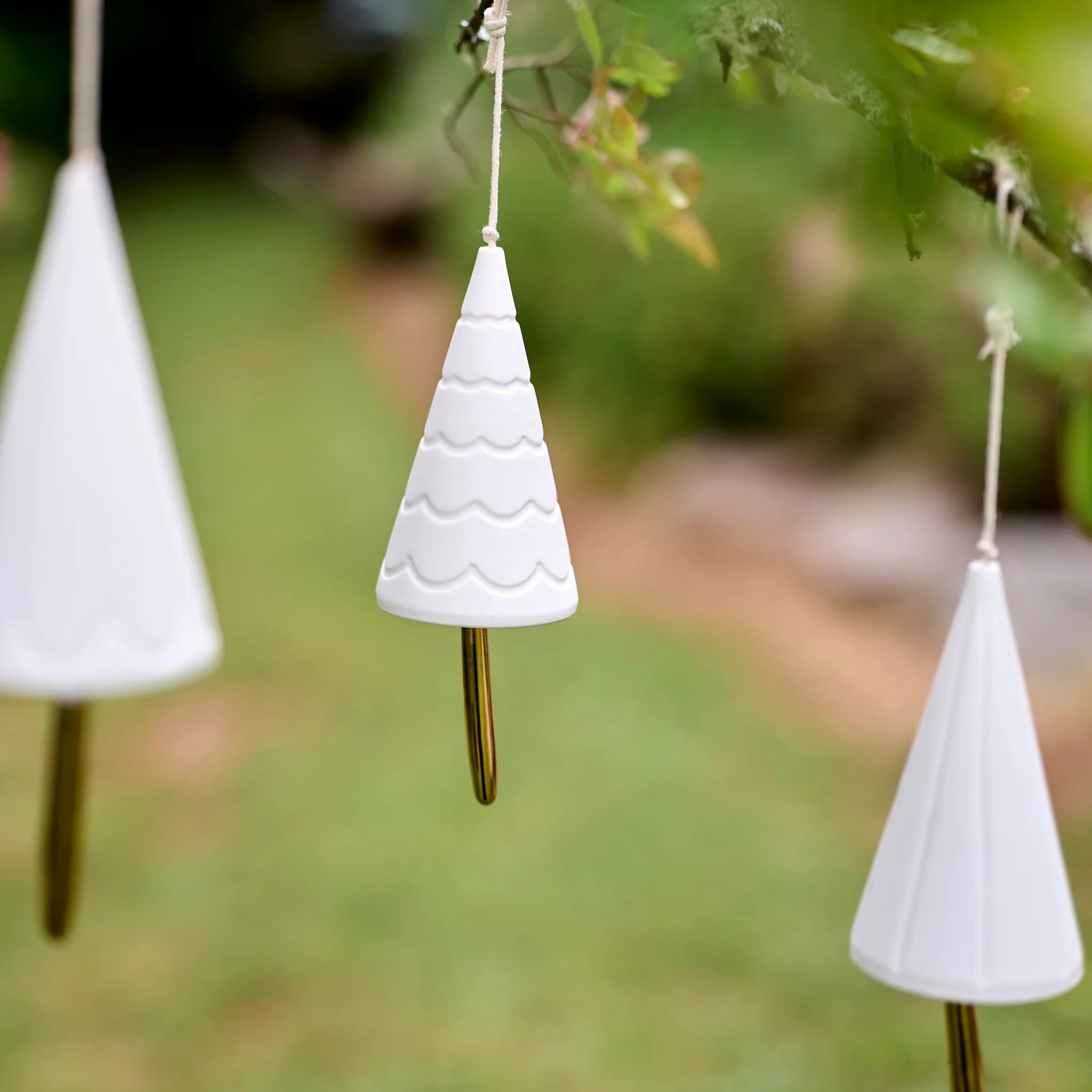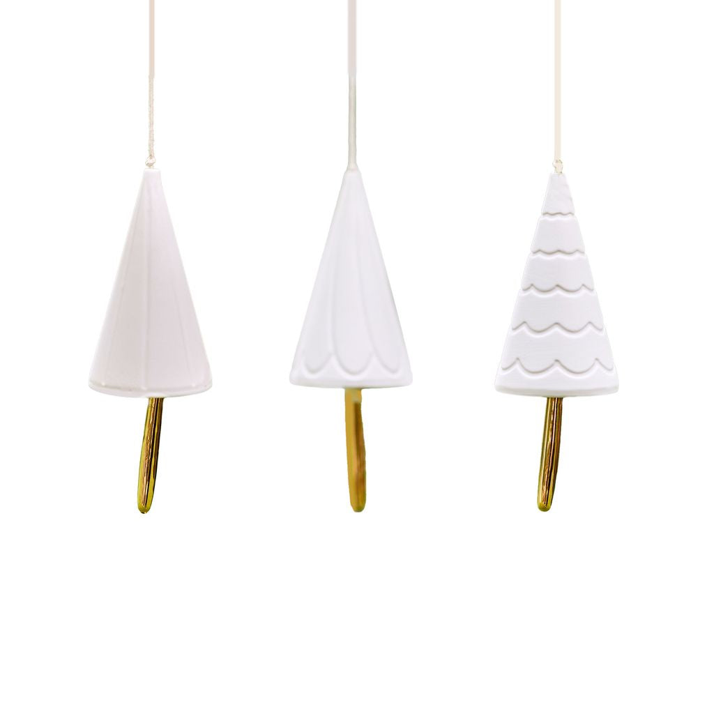 This beautiful set of three hanging Christmas tree bells brings festive cheer to your home. Crafted with a natural white clay finish and accented in gleaming gold, these charming ornaments add a touch of artisan style to your Christmas tree.