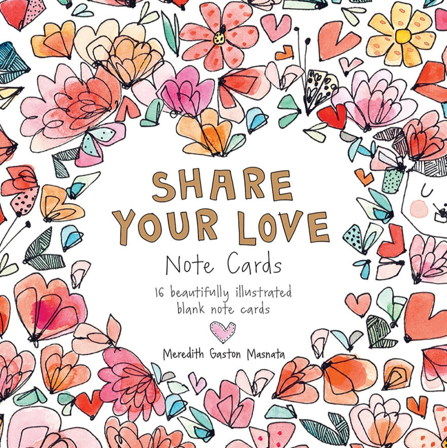 Presented in a beautiful gift box, Share Your Love Note Cards includes 16 blank cards and envelopes featuring Meredith Gaston Masnata’s enchanting illustrations that celebrate love.