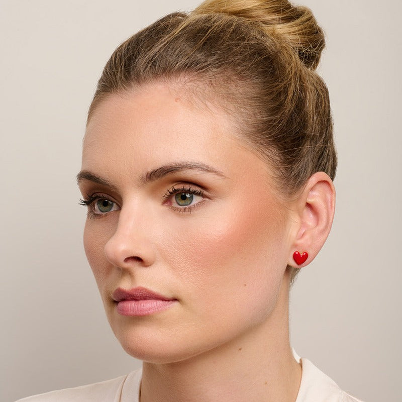 Red Enamel Love Heart Studs