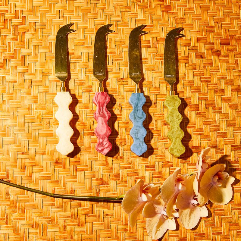 With bold curves and wavy edges, this resin cheese knife channels mid-century soul for modern entertaining. Crafted to elevate everything from shared plates to styled grazing boards.