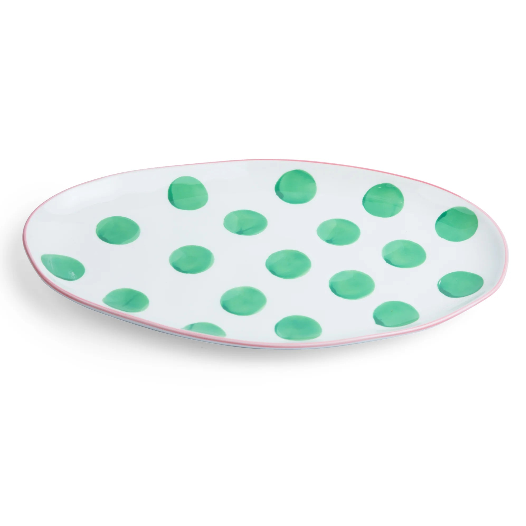Oval Platter - Green Dots